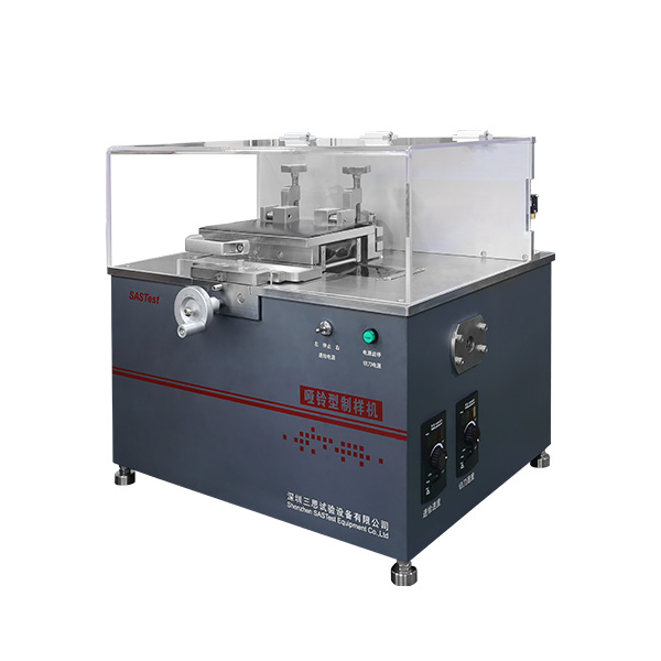 三、 設(shè)備說明:啞鈴型制樣機適用于制取各種非金屬管材或板材的啞鈴型拉伸試樣及維卡熱變形試樣。本機采用仿形加工原理,并結(jié)合機械傳動原理將螺紋旋轉(zhuǎn)運動轉(zhuǎn)變成直線運動,具有操作簡單、快速、方便且制得試樣標準、尺寸穩(wěn)定等特點。試樣與刀具的相對位置可根據(jù)實際情況調(diào)節(jié),試樣的形狀由相應(yīng)的靠模板形狀控制,工作過程不受操作人員調(diào)動的影響,多次重復(fù)使用,不需要反復(fù)對刀,能得到用戶需要的試樣樣條;減少了工作時間的耗損和提高了操作的通用性、提高了工作效率、降低了加工成本;且在工作臺面上安裝有吸塵裝置,為工作人員提供了良好的工作環(huán)境。采用標準銑刀加工,刀具耐用,制得樣品邊緣平滑,無毛刺。是電子拉力萬能試驗機及維卡熱變形試驗機的理想配套產(chǎn)品。