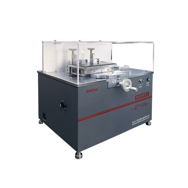 三、 設(shè)備說明:啞鈴型制樣機適用于制取各種非金屬管材或板材的啞鈴型拉伸試樣及維卡熱變形試樣。本機采用仿形加工原理,并結(jié)合機械傳動原理將螺紋旋轉(zhuǎn)運動轉(zhuǎn)變成直線運動,具有操作簡單、快速、方便且制得試樣標準、尺寸穩(wěn)定等特點。試樣與刀具的相對位置可根據(jù)實際情況調(diào)節(jié),試樣的形狀由相應(yīng)的靠模板形狀控制,工作過程不受操作人員調(diào)動的影響,多次重復(fù)使用,不需要反復(fù)對刀,能得到用戶需要的試樣樣條;減少了工作時間的耗損和提高了操作的通用性、提高了工作效率、降低了加工成本;且在工作臺面上安裝有吸塵裝置,為工作人員提供了良好的工作環(huán)境。采用標準銑刀加工,刀具耐用,制得樣品邊緣平滑,無毛刺。是電子拉力萬能試驗機及維卡熱變形試驗機的理想配套產(chǎn)品。